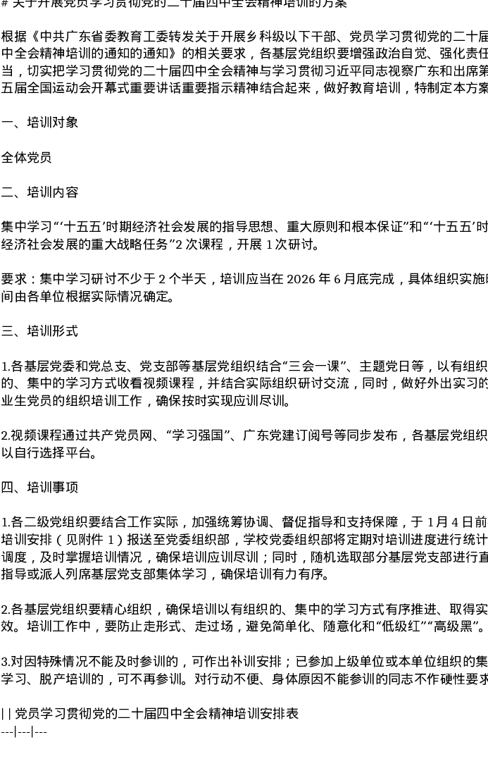 关于开展党员学习贯彻党的二十届四中全会精神培训的方案