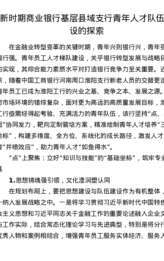 调研报告:新时期商业银行基层县域支行青年人才队伍建设的探索