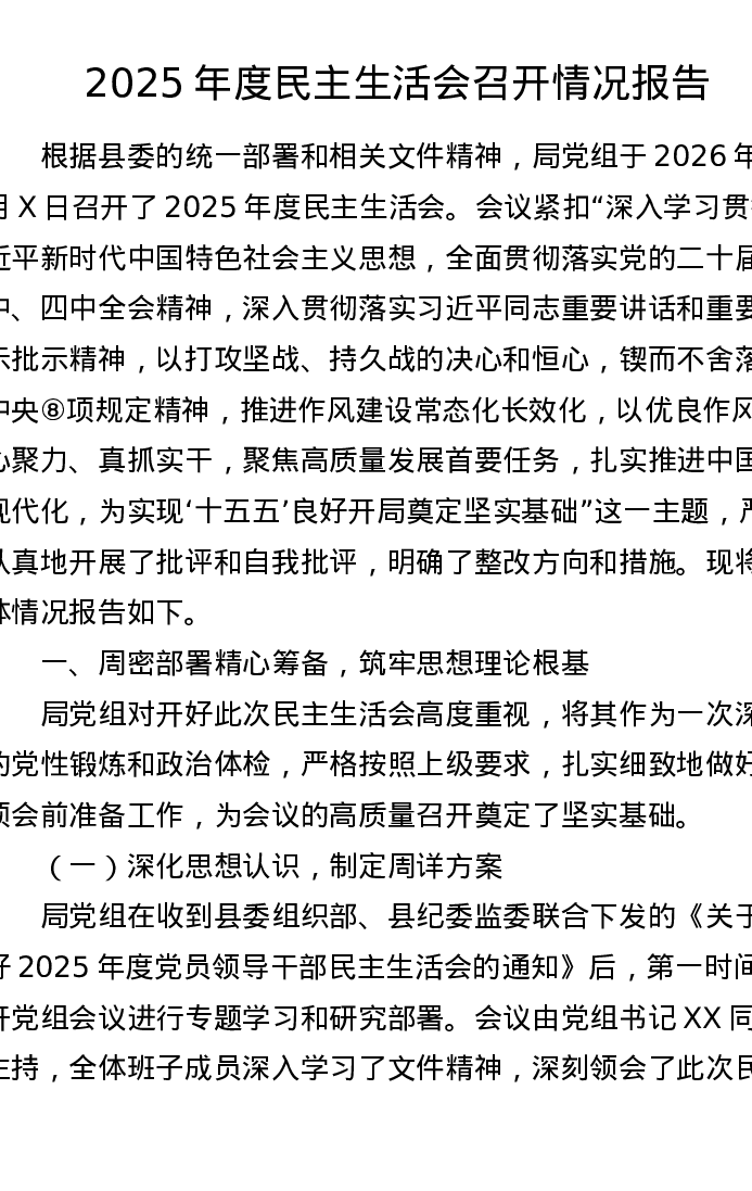 2025年度xxxxx召开情况报告(五个带头)