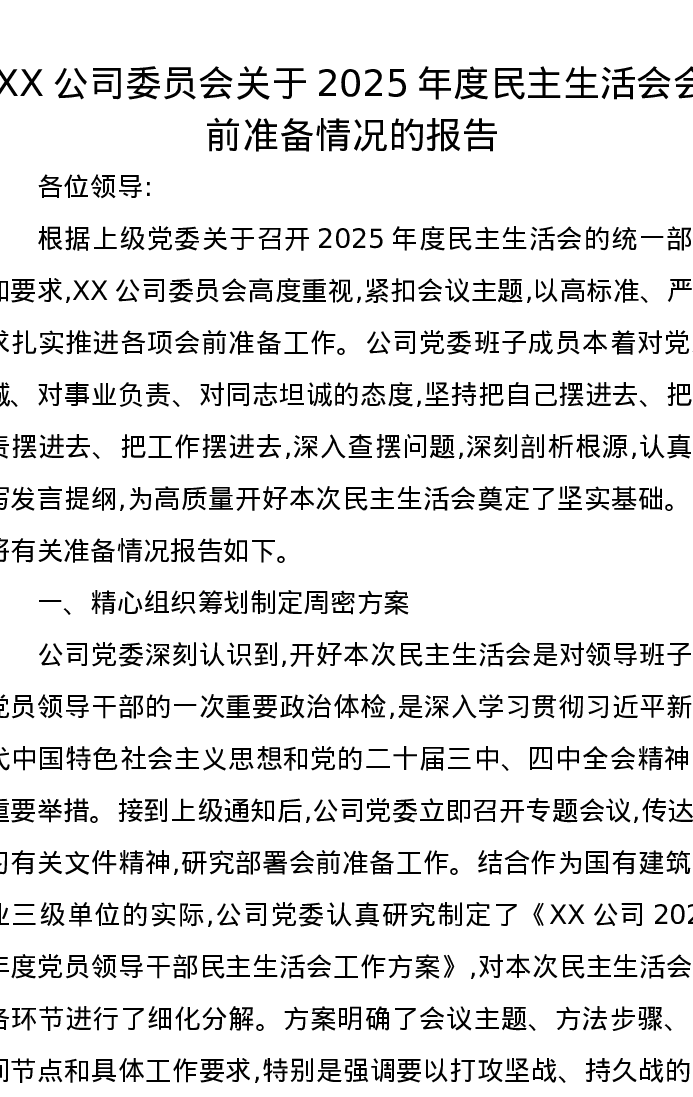 XX公司委员会关于2025年度xxxxx会前准备情况的报告(五个带头)