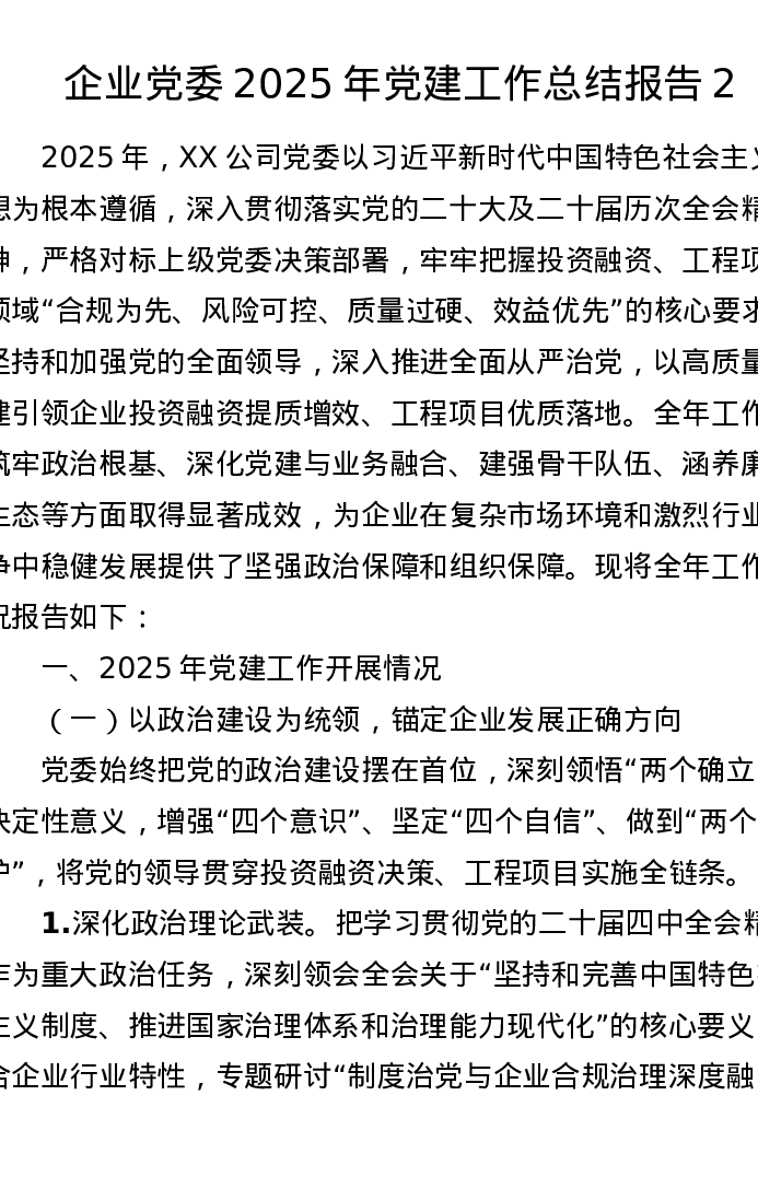 企业党委2025年党建工作总结报告2