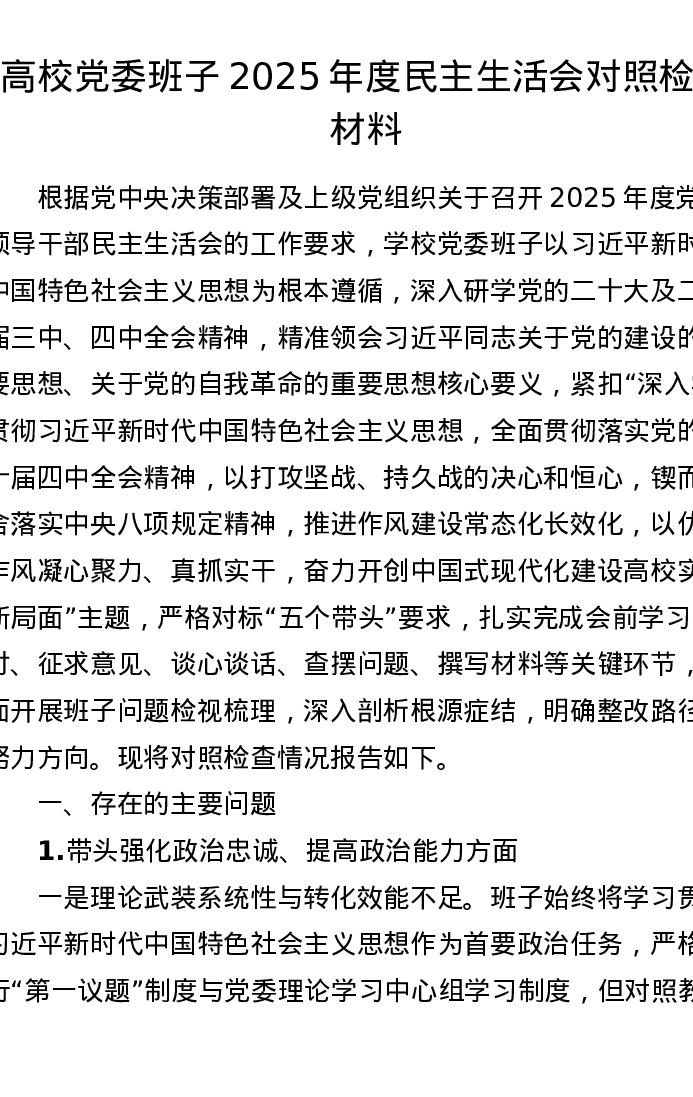 【原创】高校党委班子2025年度xxxxx对照检查材料(五个带头)(6023字)