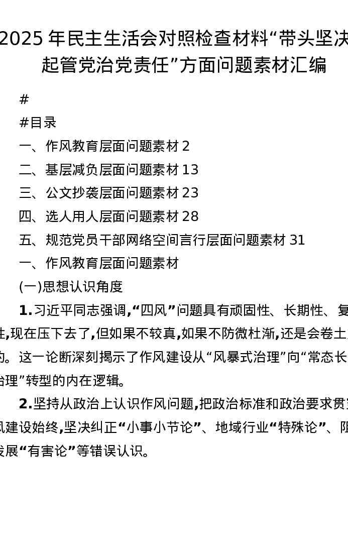 2025年xxxxx对照检查材料带头坚决扛起管党治党责任方面问题素材汇编