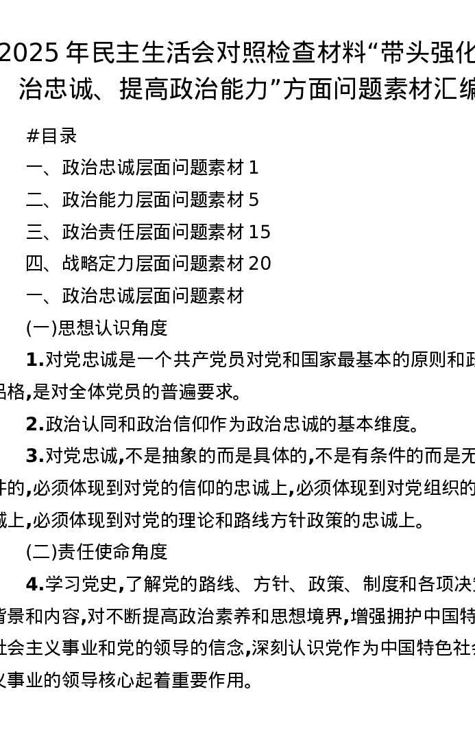 2025年xxxxx对照检查材料带头强化政治忠诚、提高政治能力方面问题素材汇编