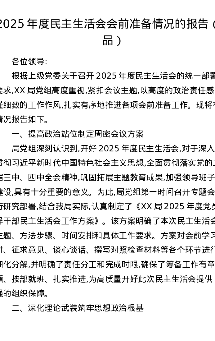 2025年度xxxxx会前准备情况的报告(五个带头)