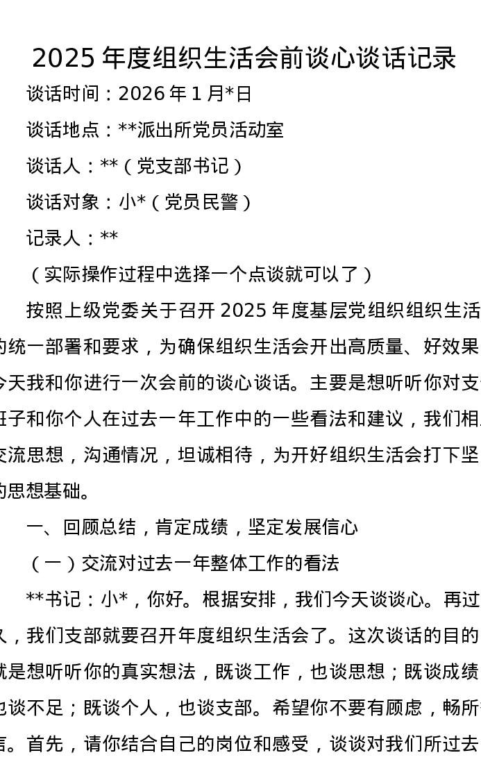 2025年度组织xxx前谈心谈话记录2