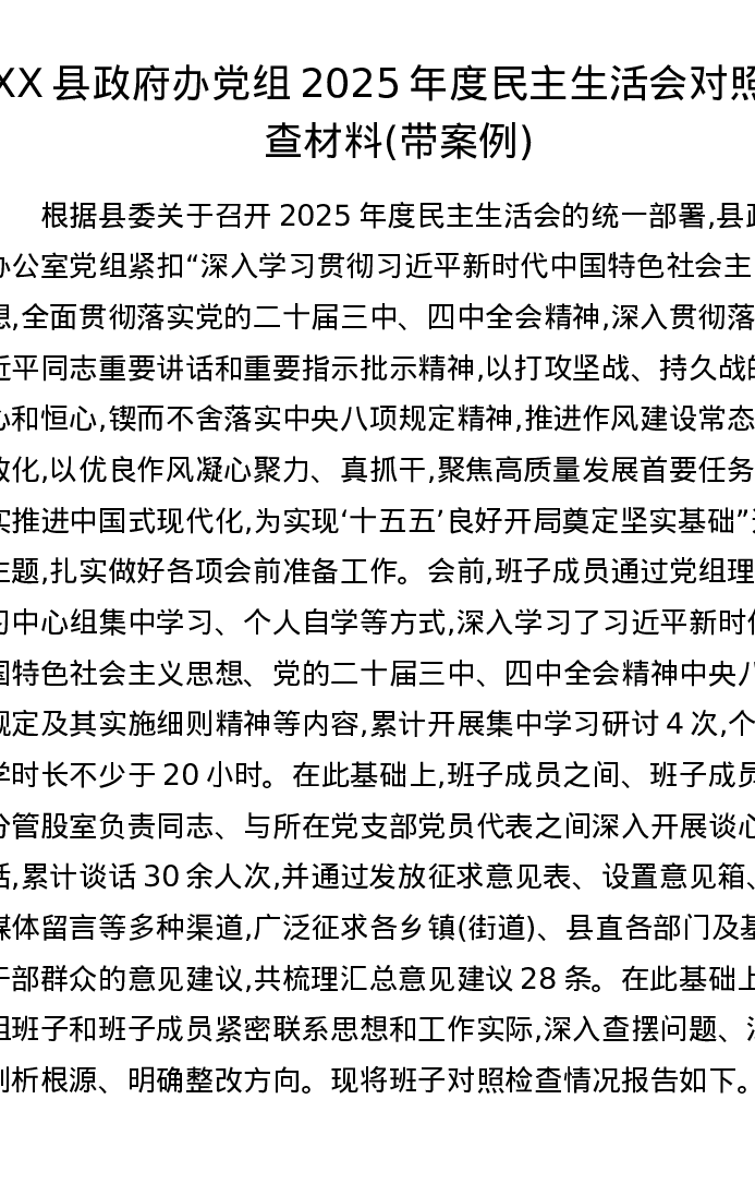 XX县政府办党组2025年度xxxxx对照检查材料(带案例)(五个带头)