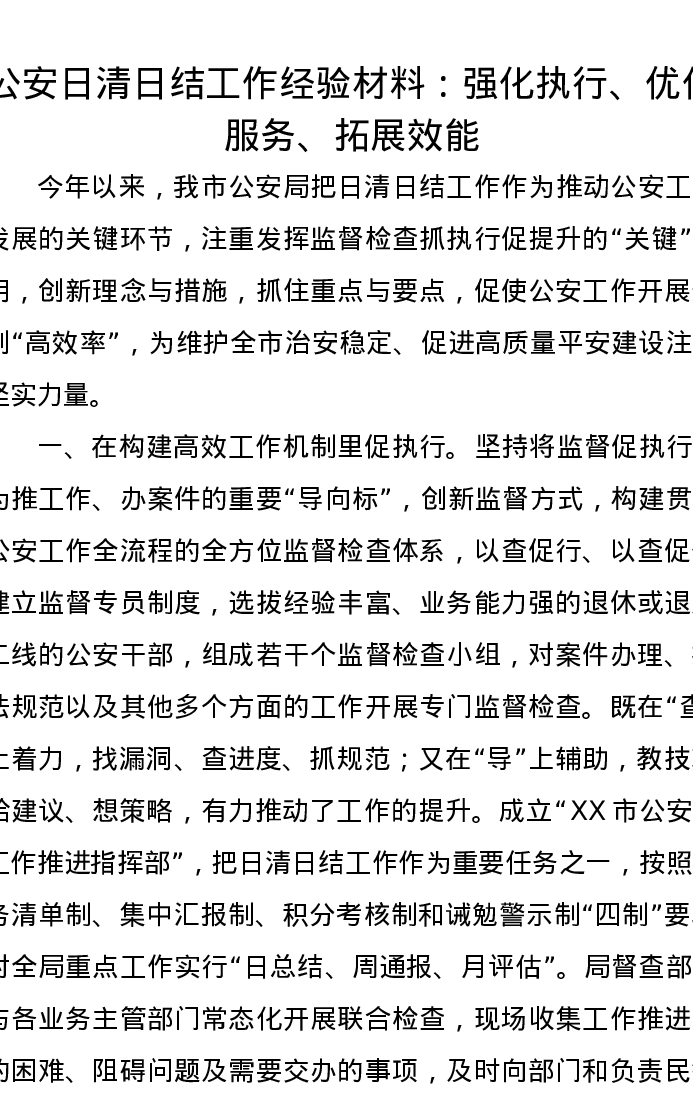 公安日清日结工作经验材料:强化执行、优化服务、拓展效能