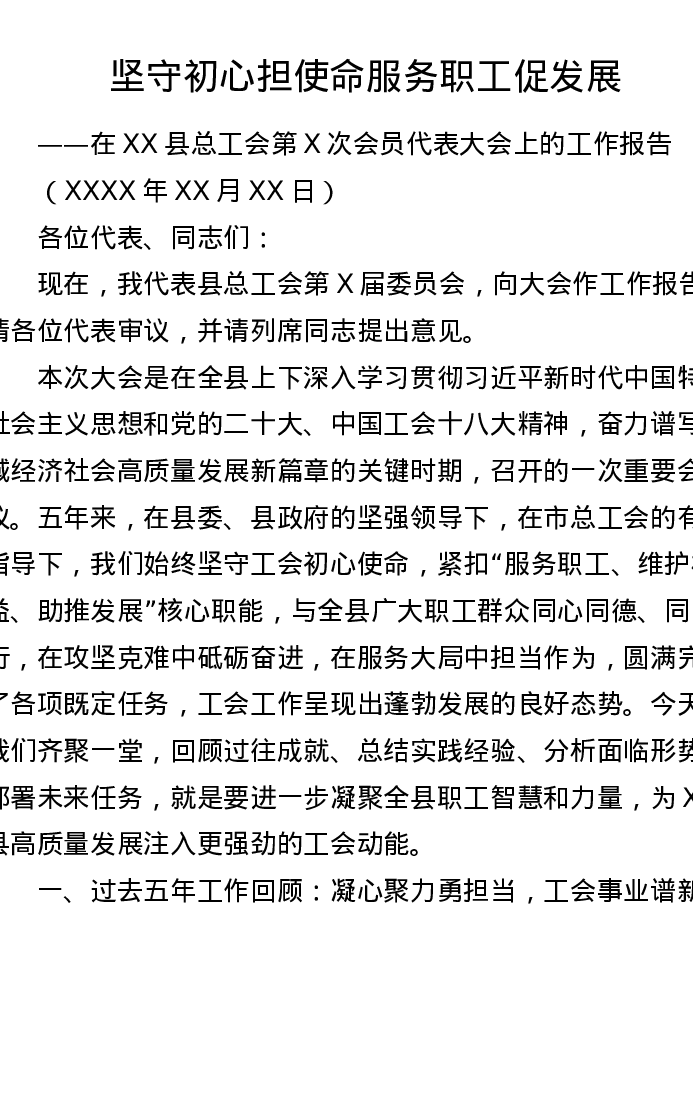 【原创】在XX县总工会第X次会员代表大会上的工作报告—坚守初心担使命 服务职工促发展