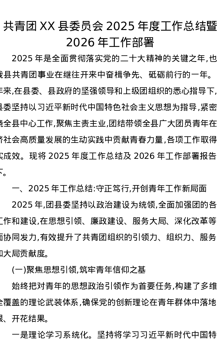 共青团XX县委员会2025年度工作总结暨2026年工作部署