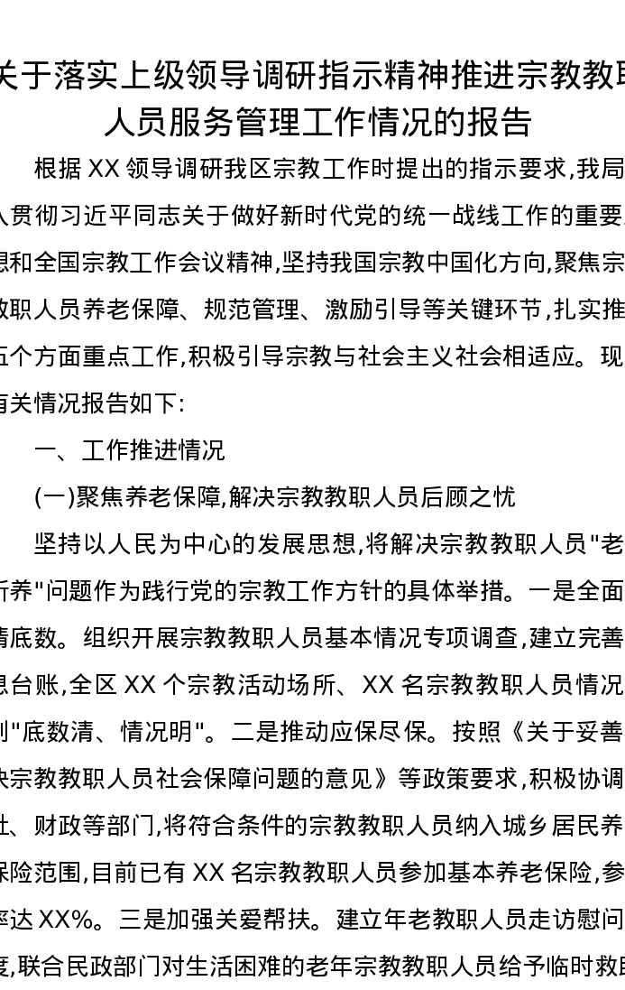 关于落实上级领导调研指示精神推进宗教教职人员服务管理工作情况的报告