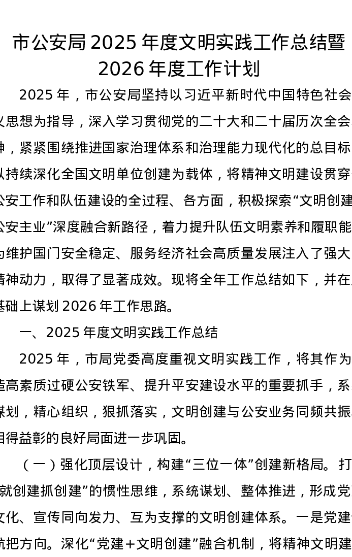 市公安局2025年度文明实践工作总结暨2026年度工作计划