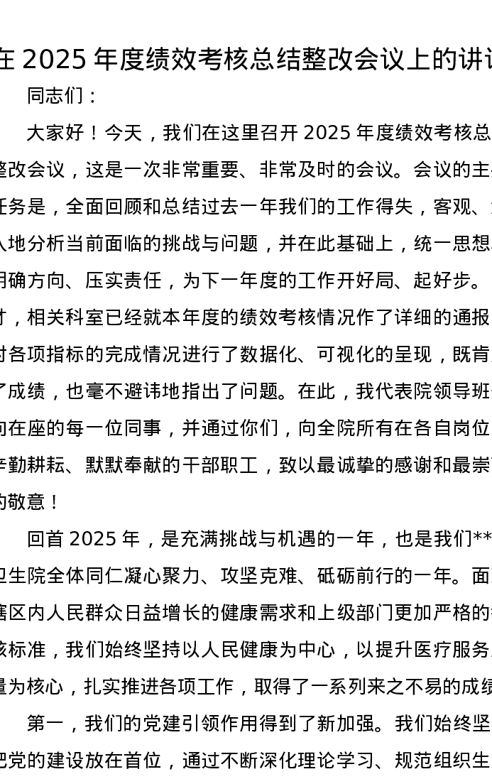 在2025年度绩效考核总结整改会议上的讲话