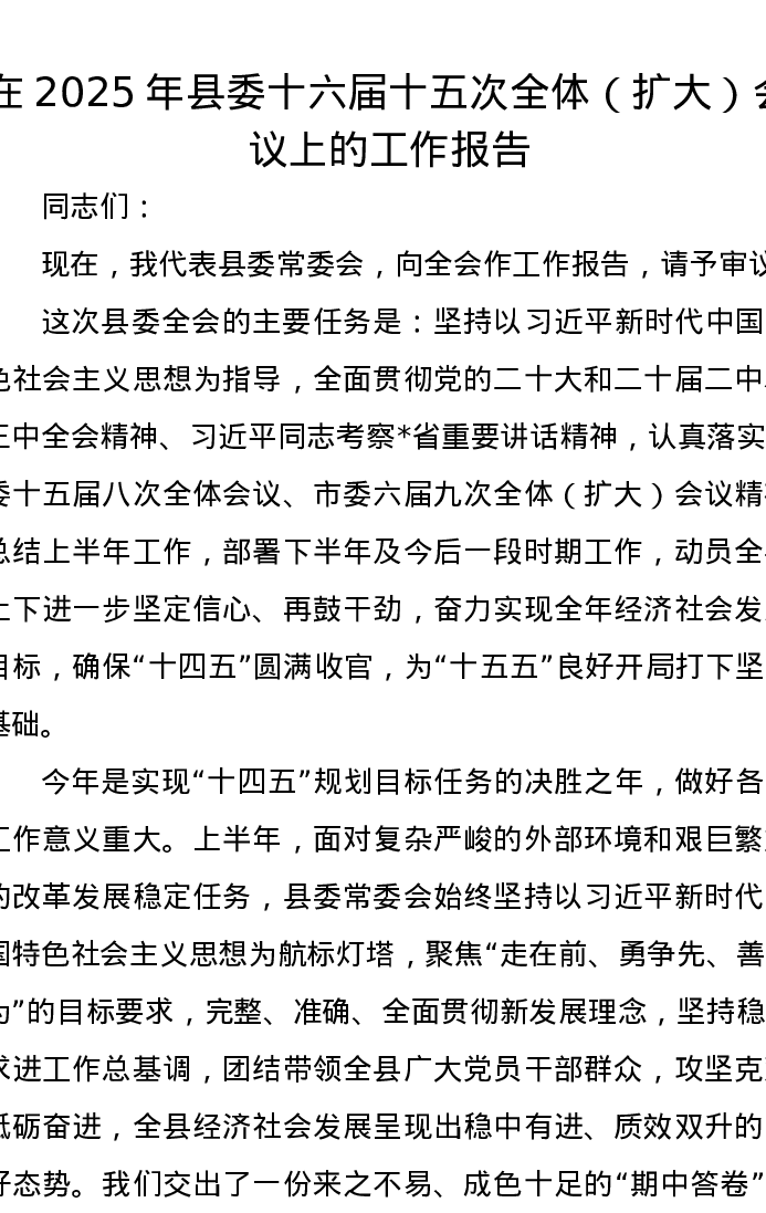 在2025年县委十六届十五次全体(扩大)会议上的工作报告