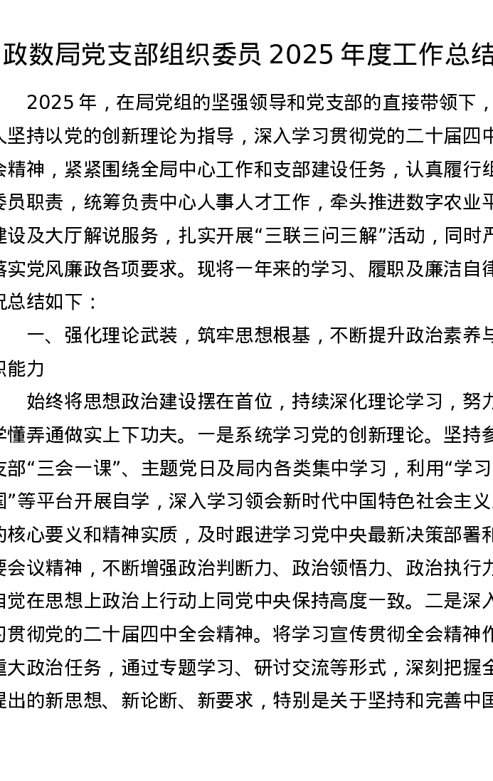 政数局党支部组织委员2025年度工作总结2