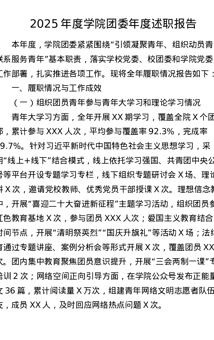 【原创】2025年度学院团委年度述职报告
