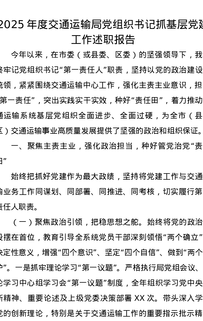 2025年度交通运输局党组织书记抓基层党建工作述职报告