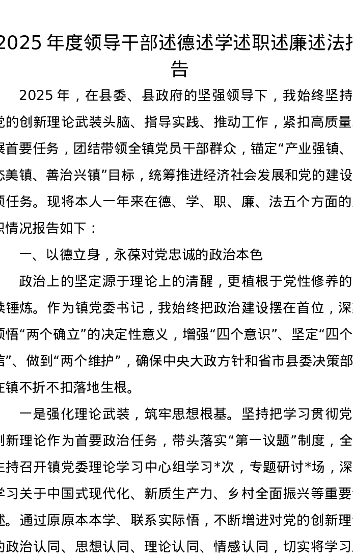 2025年度领导干部述德述学述职述廉述法报告