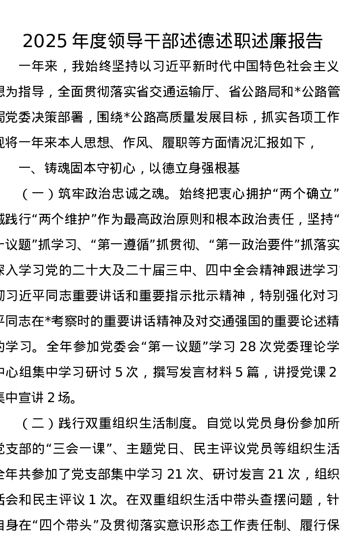 2025年度领导干部述德述职述廉报告