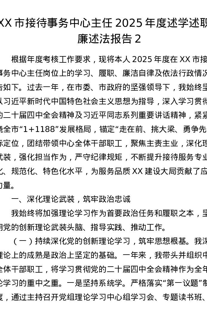 XX市接待事务中心主任2025年度述学述职述廉述法报告2