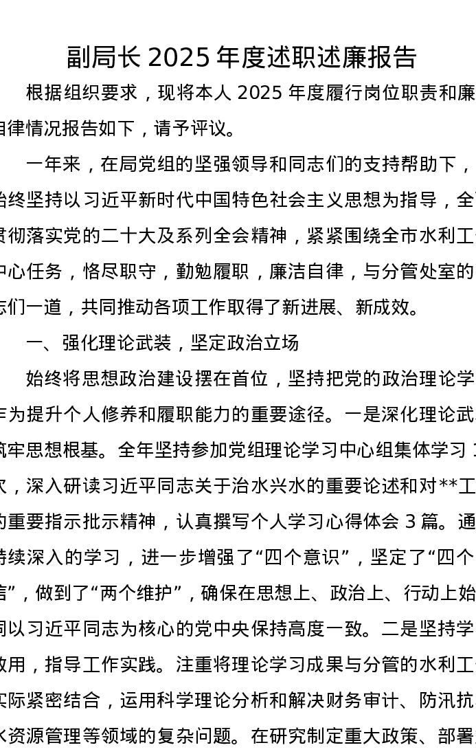 副局长2025年度述职述廉报告