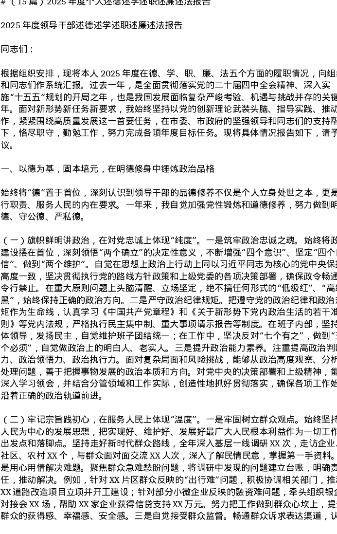 汇编:2025年度个人述德述学述职述廉述法报告