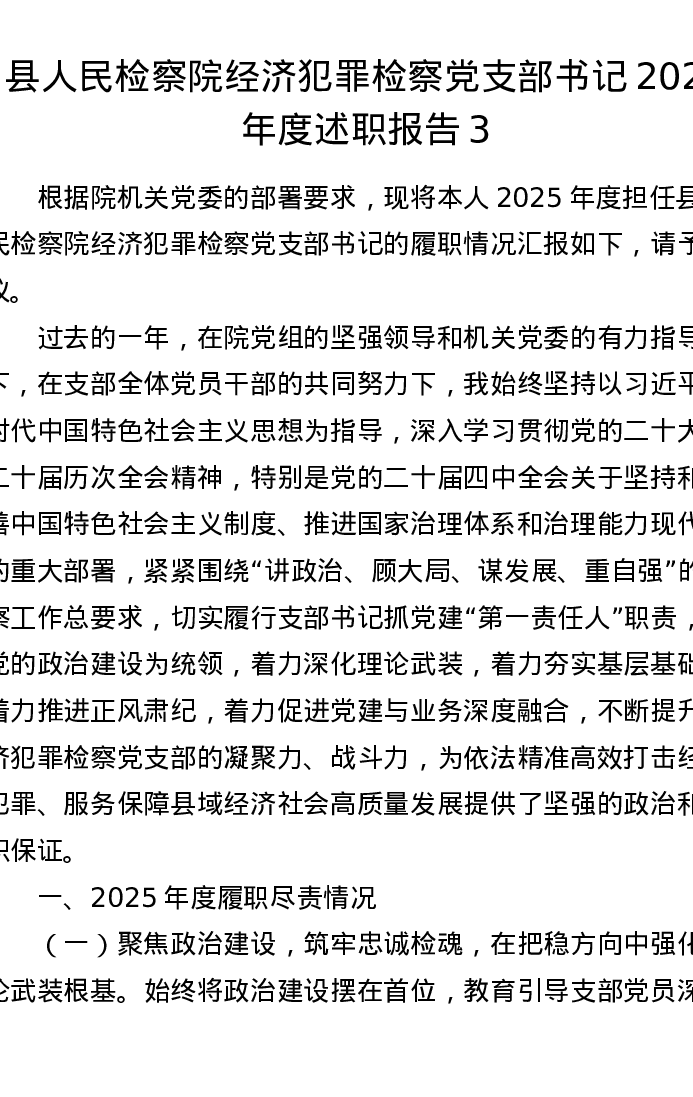 县人民检察院经济犯罪检察党支部书记2025年度述职报告3