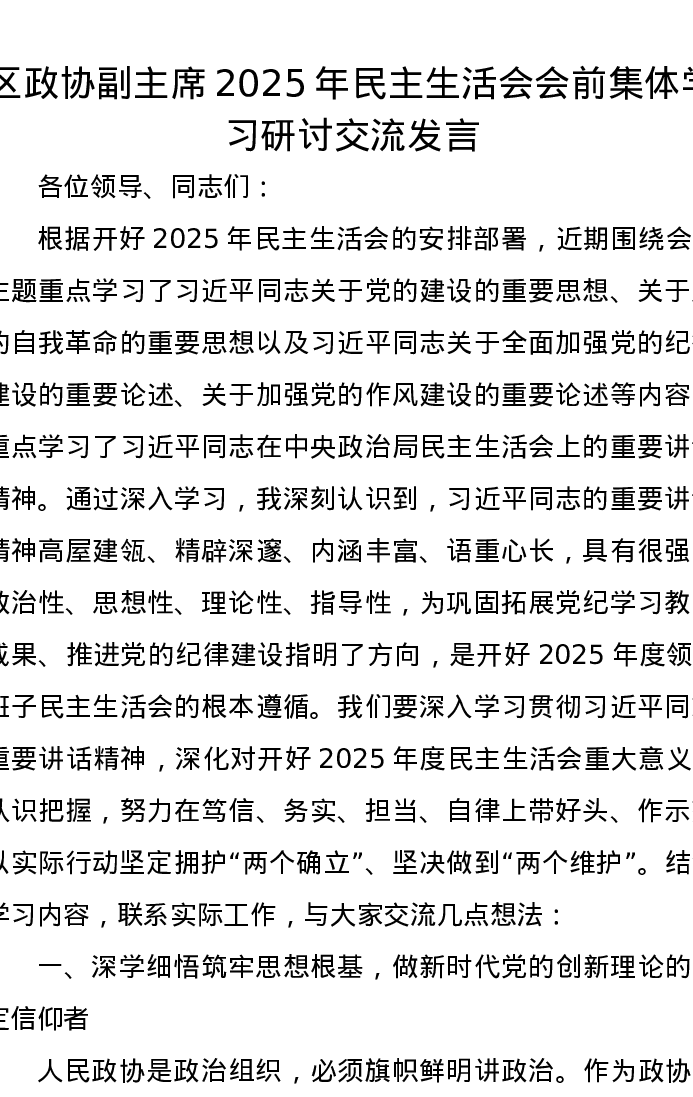 区政协副主席2025年xxxxx会前集体学习研讨交流发言