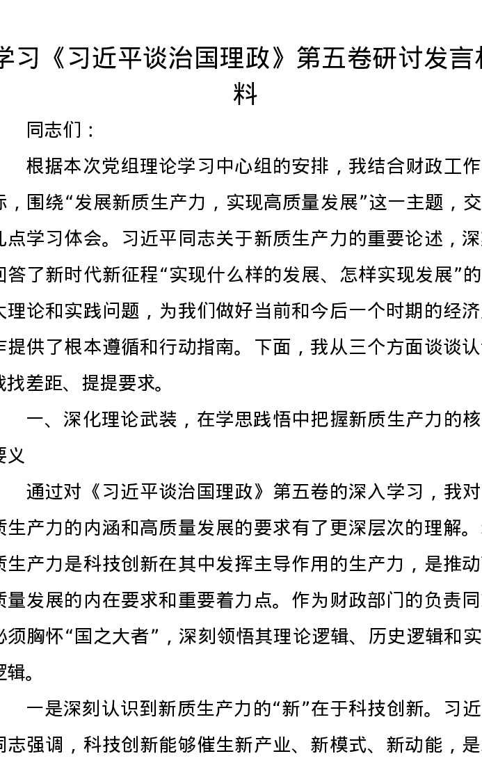 学习《习近平谈治国理政》第五卷研讨发言材料