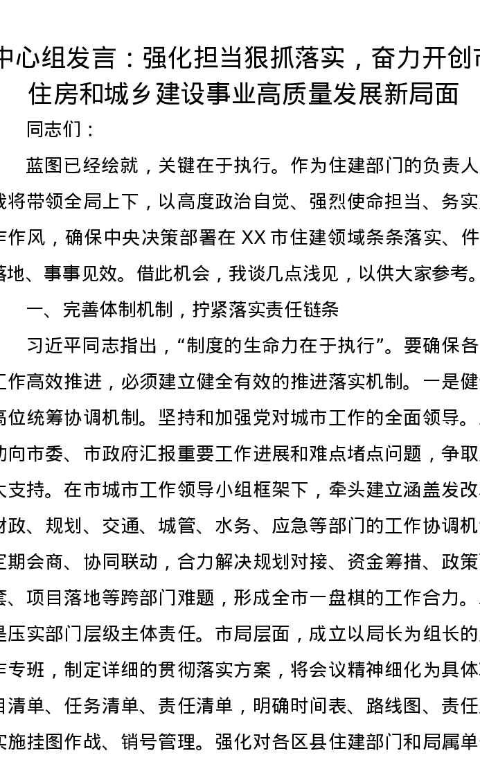 中心组发言:强化担当狠抓落实,奋力开创市住房和城乡建设事业高质量发展新局面