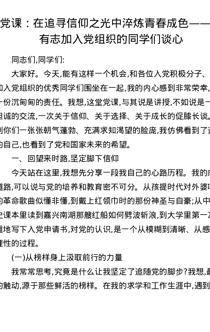 党课讲稿:在追寻信仰之光中淬炼青春成色——与有志加入党组织的同学们谈心