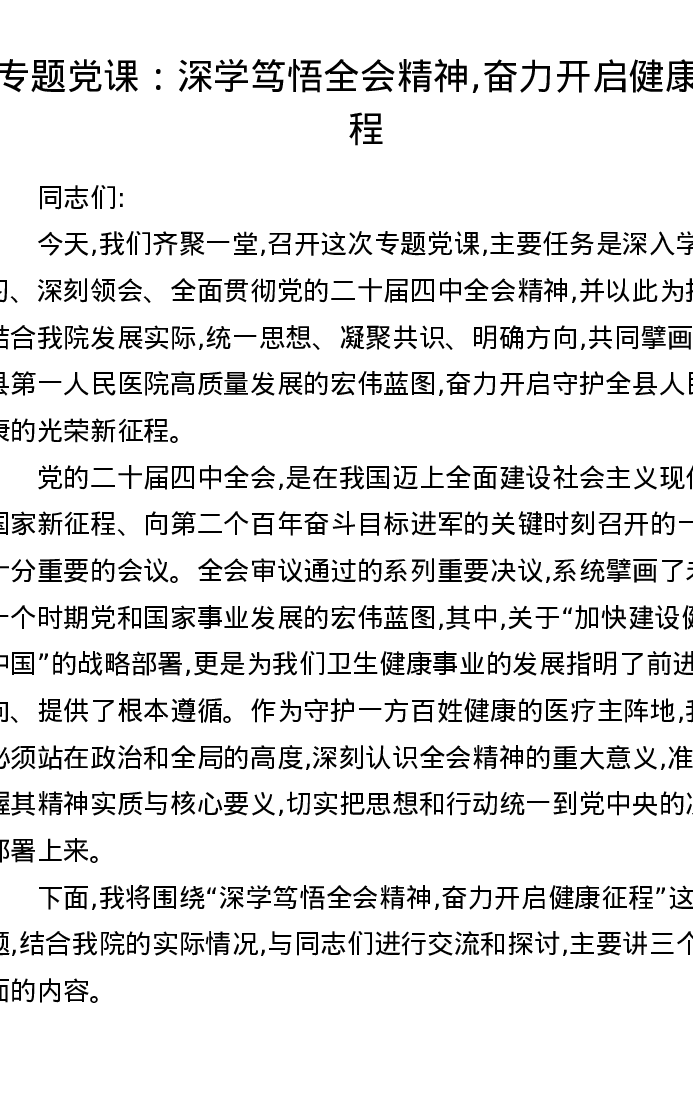 专题党课讲稿:深学笃悟全会精神,奋力开启健康征程