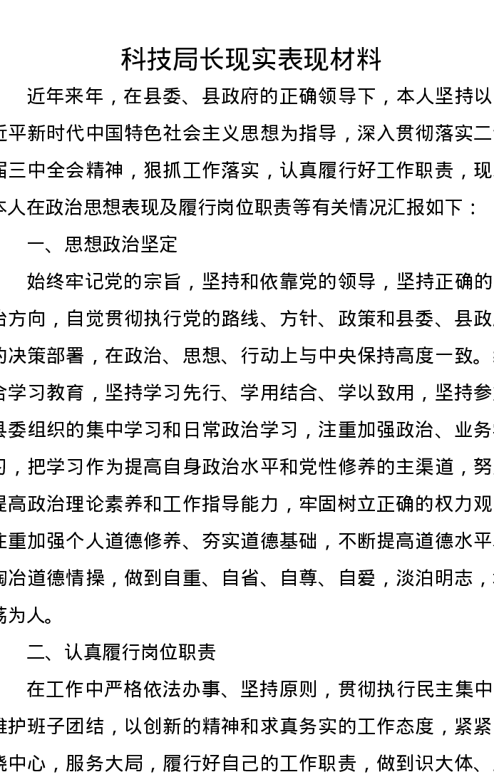 科技局长现实表现材料