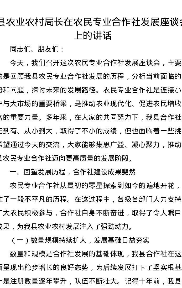 县农业农村局长在农民专业合作社发展座谈会上的讲话