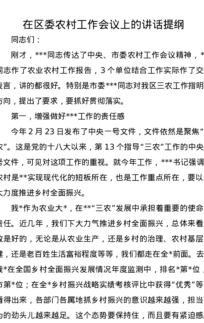 在区委农村工作会议上的讲话提纲