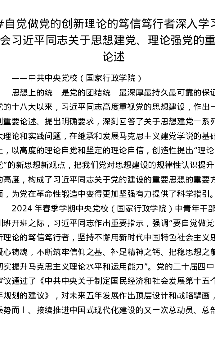 自觉做党的创新理论的笃信笃行者 深入学习领会总书记关于思想建党、理论强党的重要论述
