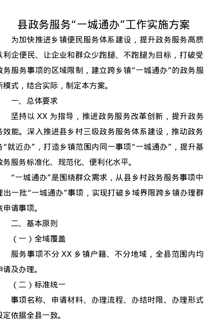 县政务服务一城通办工作实施方案