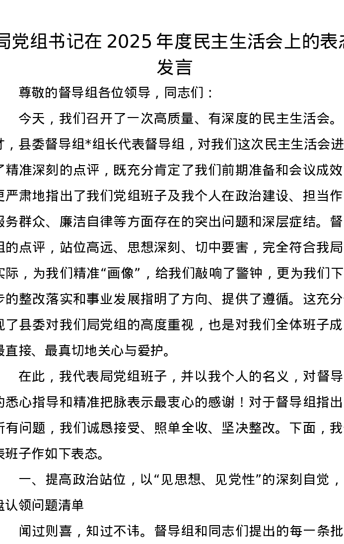 局党组书记在2025年度xxxxx上的表态发言(五个带头)