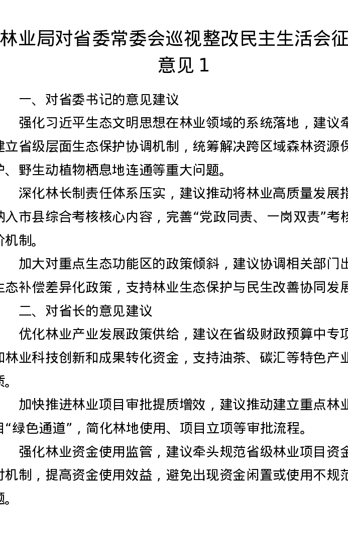 林业局对省委常委会巡视整改xxxxx征求意见1