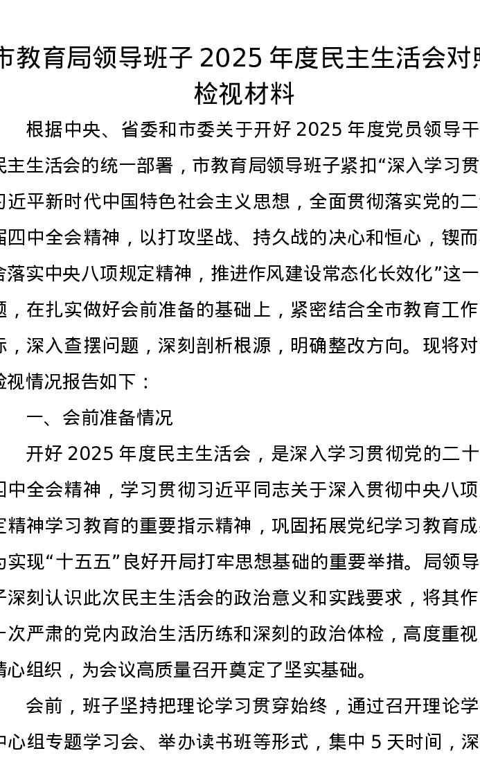 市教育局领导班子2025年度xxxxx对照检视材料(五个带头)