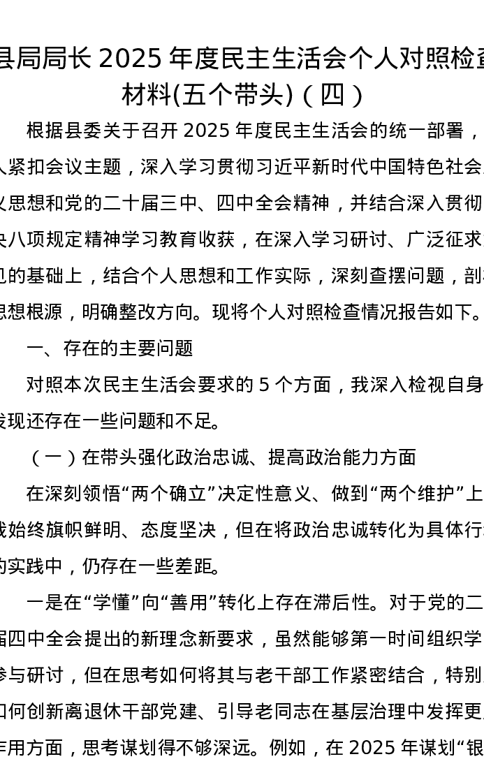 县局局长2025年度xxxxx个人对照检查材料(五个带头)(四)