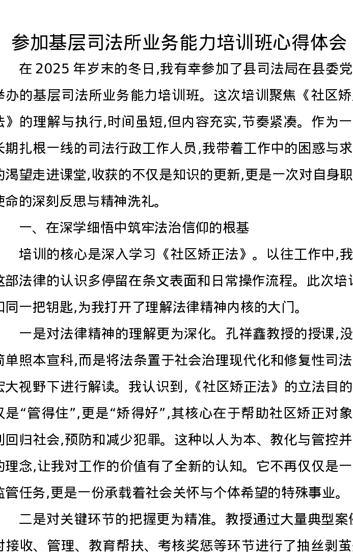 参加基层司法所业务能力培训班心得体会