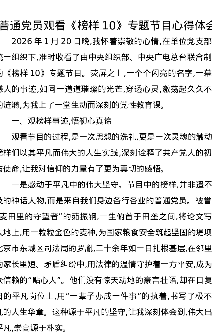 普通党员观看《榜样10》专题节目心得体会