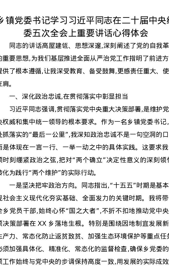 乡镇党委书记学习习近平总书记在二十届中央纪委五次全会上重要讲话心得体会