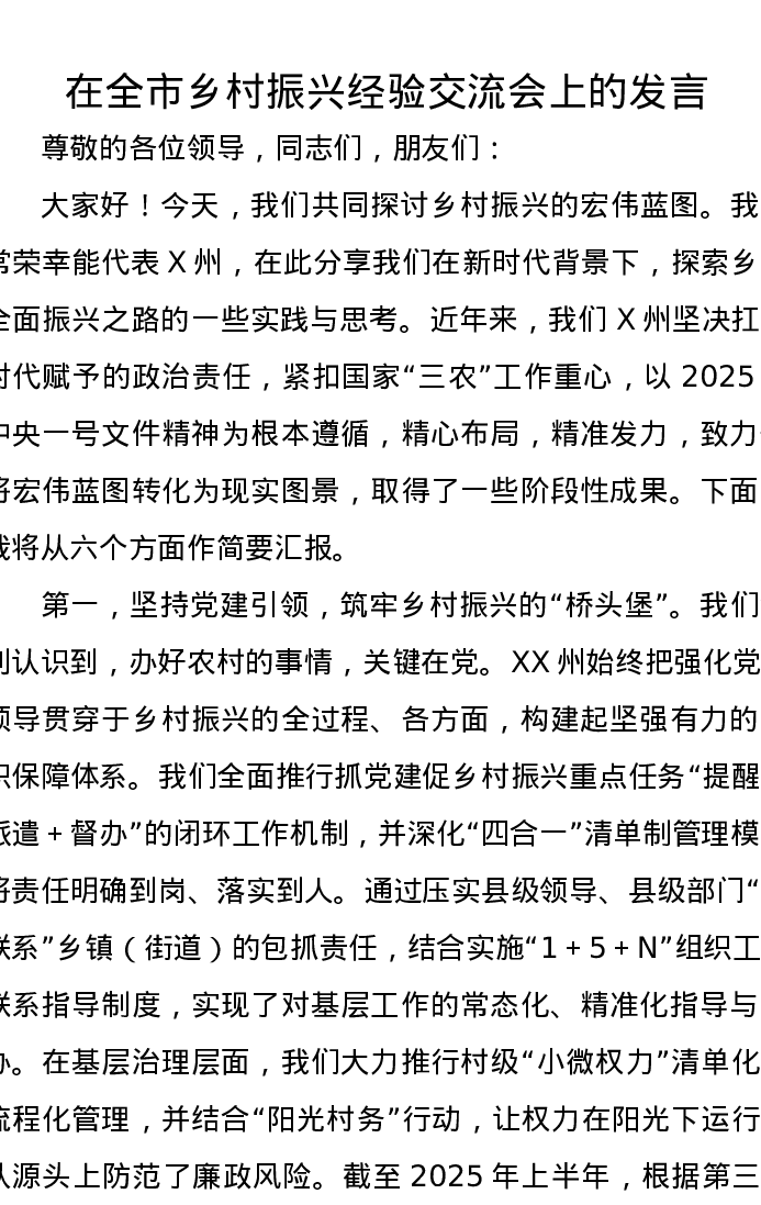 在全市乡村振兴经验交流会上的发言
