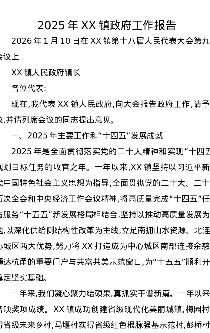 2025年XX镇政府工作报告