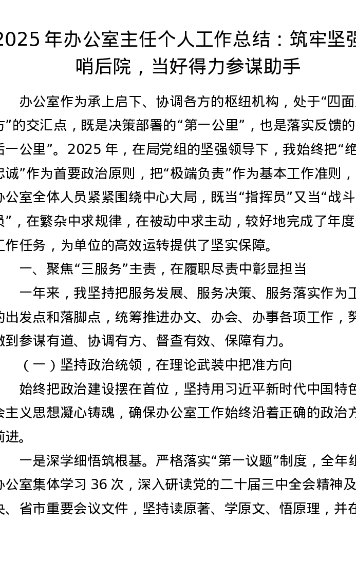 2025年办公室主任个人工作总结:筑牢坚强前哨后院,当好得力参谋助手