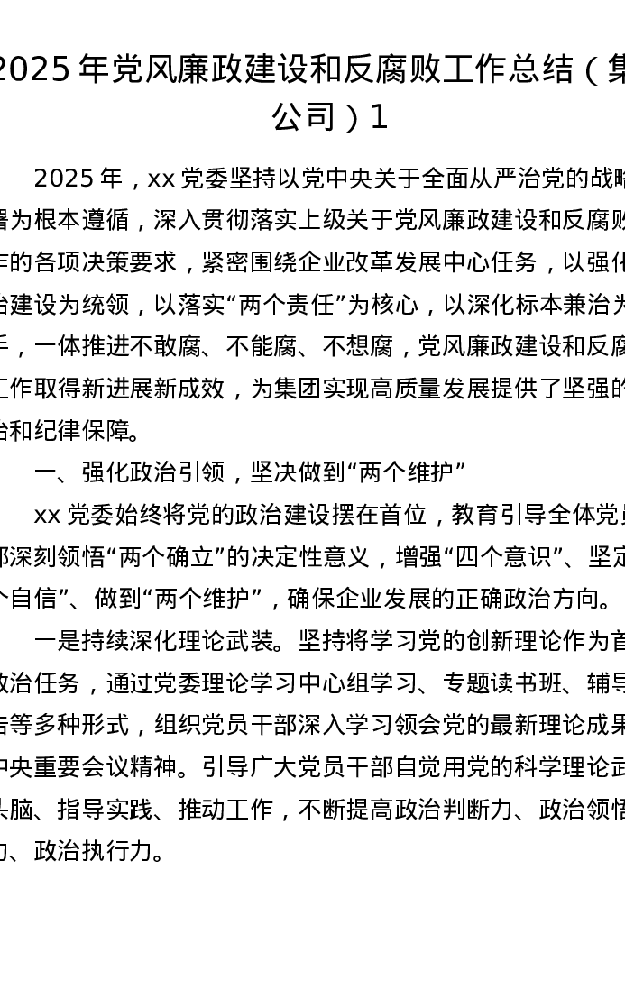 2025年党风廉政建设和反腐败工作总结(集团公司)1