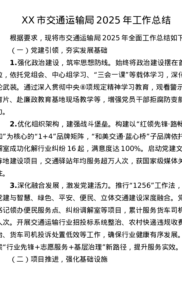 XX市交通运输局2025年工作总结