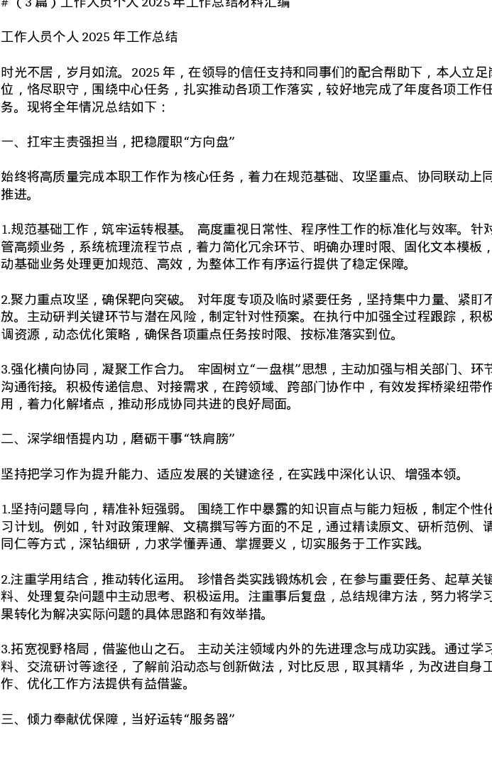 汇编:工作人员个人2025年工作总结材料汇编
